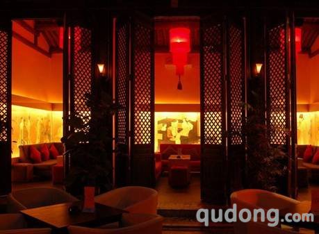 其中坐落在烟袋斜街的中段的“莲花”是目前北京最Lounge的酒吧之一。一座刷成灰紫色的二层小楼,门口看不到招牌,二层月亮窗上插着的莲花就是它的标志。很多小资人士最爱来“莲花”,尤其喜爱风情旖旎的二楼。顺着狭窄陡峭的木梯爬上去,展现在眼前的是一方恍若世外桃源的小天地,红的墙、绿的树;红的靠垫、绿的长椅,两种色彩的搭配在这里看来是如此的和谐美妙、引人入胜。很多人都觉得对这里的气氛和感觉很难用语言表达出来,也有很多人把这儿当成了家,有事儿没事儿都爱跑过来赖会儿,聊聊天、发发呆,上上网,消磨时光是一件多么惬意的事情。