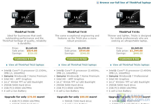 ThinkPad T410i系列笔记本最高可配置8GB内存和500GB硬盘,也可选择128GB固态硬盘。配置DVD刻录光驱。选择4芯、6芯或9芯锂离子电池。