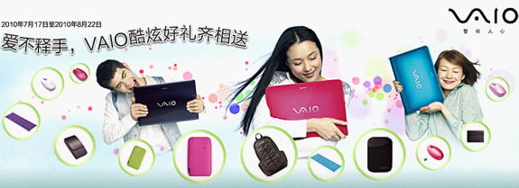 八大经典系列、十余款明星产品、数款定制机型、酷炫超值原装配件……为了满足不同类型消费者的购买需求,索尼(中国)有限公司推出“爱不释手,VAIO酷炫好礼齐相送”暑期促销活动,明星产品纷至沓来 ——撩动年轻潮人时尚神经的酷袋笔记本P11系列、轻薄外形上乘质量的性价比明星Y218系列、至尊商务之选X13系列、优雅生活与娱乐尽享兼顾的雅致家庭娱乐笔记本EB2系列、色彩与花纹奇遇的炫美EA2系列、便携与性能完美平衡的Z11、Z12系列以及职场新贵的轻盈装备S12系列,更有多款可定制机型,为消费者带来清凉一夏。2010年7月17日至8月22日,凡购买指定型号的笔记本,就能获得风尚酷礼一份!无论您是居家宅人,还是街头潮人;无论你是商圈贵族还是职场新人,索尼夏季促销打造属于您的专属天使,赶快一起和VAIO炫彩一夏吧!