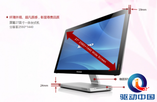 联想IdeaCentre A730的27寸触摸屏采用黑色边框,而其主打超薄的理念也让这个“庞然大物”仅拥有19mm的厚度,黑色边框上除了“LENOVO”和“IdeaCentre”外没有其他的装饰,一切都透露出时尚简约的家居理念。这款屏幕采用了IPS广角显示屏,拥有10亿7千万色的色彩显现能力,并提供2560*1440分辨率,即便只是普通的观影需求,也能为用户带来更加细腻、色彩更加逼真的视觉效果,轻松构建家庭影院。