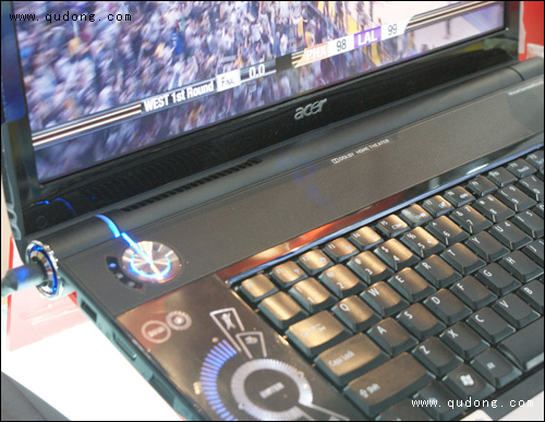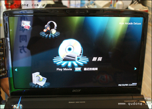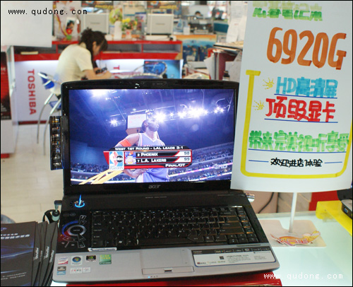 外观上,这款宏碁6920G采用了Acer的蓝宝石外观设计,整体采用了钢琴烤漆的材质,使得外观比较时尚高贵。机盖上的LOGO层次感很强,会随光源的变化而呈现立体层次感。而屏幕方面,宏碁6920G采用一块比较罕见的16英寸220流明高清丽镜宽屏,标准分辨率高达1366×768,显示效果非常的出色,无论是高清电影还是游戏都有着非常好的视觉效果。此外,该机还在操作区设置多媒体控制面板,内置的Tuba低音炮与双立体声音箱也增加这款机器的娱乐效果。不过其重量高达3.5kg,便携性能比较差。