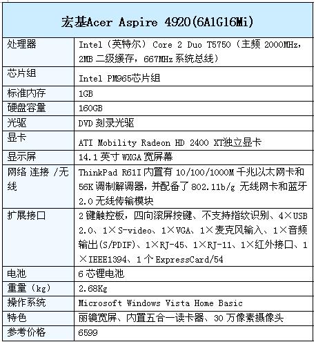【产品型号】宏基Acer Aspire 4920(6A1G16Mi)