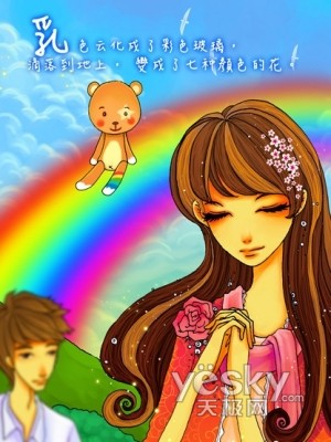 我和他在彩虹下面都许了个愿望,他问我许了什么愿,我骗他说“我想要只小熊”,酷库熊,知道吗,你就是这么来的。