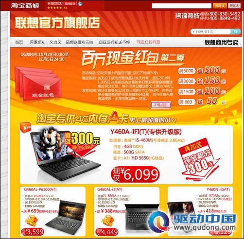 联想淘宝官方旗舰店开展了主题为“联想促销超给力,淘宝红包送不停”的暖心促销活动:从10月29日起,只要在联想官方旗舰店(http://lenovo.taobao.com)购买指定型号的联想ideapad Y460、联想G460系列等产品,不仅能享受到你无法抗拒的超值低价,更有让你心动的“全民疯狂大红包”大派送,还有机会拿到联想手机、联想旗舰大礼包等诸多好礼。