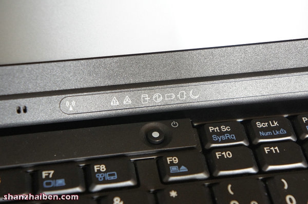 屏幕下方的中间是各种的指示灯,开机键也在这个位置。