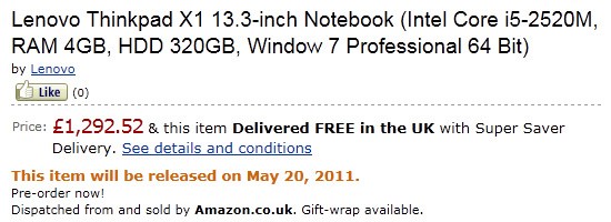 亚马逊地址:http://www.amazon.co.uk/Lenovo-Thinkpad-13-3-inch-Notebook-Professional/dp/B004WNAXHG/ref=sr_1_1?ie=UTF8&s=computers&qid=1304781684&sr=8-1