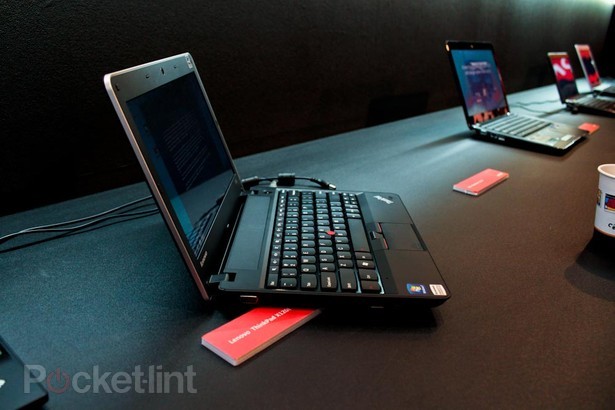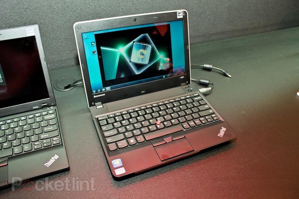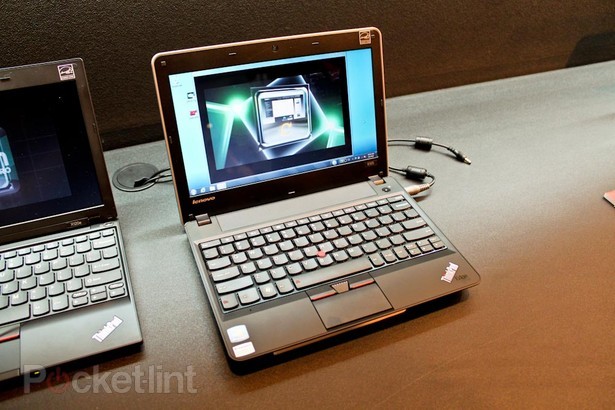 一个新的11.6英寸的ThinkPad新型号出现在Computex,这是一款基于AMD低功耗Brazos平台的产品,ThinkPad Edge E125,它采用与E220s类似的外形设计,但比X120e稍厚,巧克力键盘和触控板、指点杆让它的外观和传统的ThinkPad有点区别,最为不一样的是键盘上方有一大片空白的位置,屏幕的边框也较厚,目前尚不清楚这款产品的售价等发布情况。