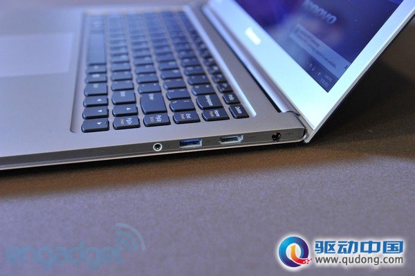 感觉 U300s 仍有许多来自 Air 的设计启发,包括玻璃材质的触控版与铝制机身,加上 Lenovo 宣称可以比其他机种更耐磨的喷沙雾面及阳极电镀的加工。可惜我们没机会针对耐磨进行测试,不过经由动手玩后感觉其做工质感的确相当不错。U300s 底部也跟 Air 一样并没有通风孔的安排,散热系统采用键盘间隙的通风设计。可惜键盘并没有背光设计,不过仍有 Lenovo 招牌的防泼水键盘的配置。