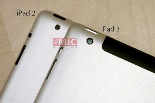 随着传闻中的发布日期逐步临近,有关苹果iPad3 的各种谍照也开始在网络上频繁曝光。除了泄露的iPad3的显示屏及主板处理器之外,日前网络上又出现了两代iPad机身的多角度对比照片。正如过去传闻的那样,苹果iPad3要比iPad2略厚一些,并且在外形上确实引进了类似Macbook Air的楔形设计。