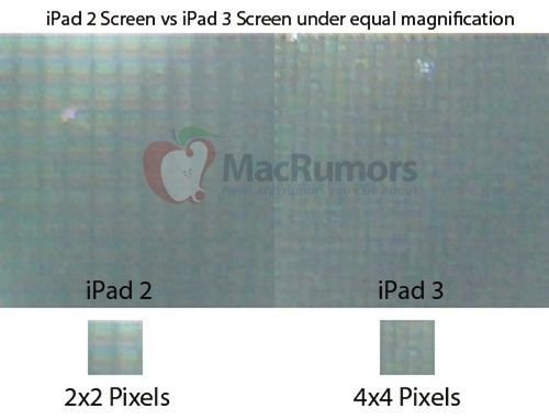 而按照过去所得到的信息,苹果iPad3将会配备9.7英寸视网膜触控屏,所支持的分辨率则是过去的两倍,也就是会由苹果iPad2的1027×768像素分辨率升级至2048×1536像素的高分辨率。