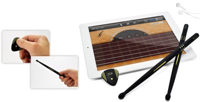 iPad上的吉他和鼓类的音乐应用有许多,但用手在屏幕上触摸的反馈感不好。日本的一家苹果周边产品公司于7月18日发布了一款新产品:可以在iPad上使用的吉他拨片和鼓棒。