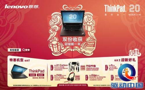 现在是时候出手了!自2012年12月21日起至2013年1月20日,联想ThinkPad将针对旗下多款重磅机型展开主题为“年末特惠双份收获”的年底促销活动。无论是旗舰超极本X1 Carbon、传承经典的T系列首款超极本T430u、彰显专业魅力的S系列、还是年轻时尚的Edge系列,只要购买促销指定机型,即可得到超值限量好礼,为你的新年带来双份收获,双份惊喜!