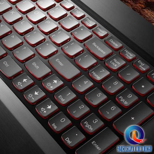 联想Y510游戏本依然使用玩家钟爱的高触感巧克力键盘,其键程设计符合人体工学原理,按下去回馈力度合适、回弹灵敏,键帽采用内弧设计,对指肚有生一种包裹的感觉,放上去很舒服,操作时能有效的吸收玩家按压力量,化解激烈操作于无形。此外,Y510还提供了红色键盘背光设计,红黑颜色的搭配迸发出无限的激情,同时也大幅提高了夜晚操作时的准确性。键盘的上方两个凌厉的“眉眼”造型下隐藏的是JBL认证的扬声器,和Y510采用的GeForce GT 755M独立显卡配合,在听觉和视觉两方面为玩家打造身临其境的效果。