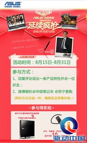 “8.18”苏宁易购嗨翻天 华硕品牌周X550掀抢购飓风 微博活动链接: