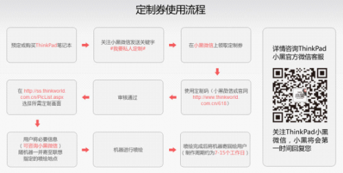 京东ThinkPad世界杯定制款的定制流程也很简单,用户在京东下单购机后,通过ThinkPad小黑微信即可获取定制券,并在客服指导下完成后续定制流程。关于ThinkPad世界杯定制款的更多信息,您也可以咨询小黑官方微信客服。