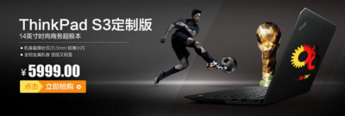京东商城和ThinkPad联手推出了New X1 Carbon和S3的世界杯定制版。现在预约购机,即可免费获得价值399元的外壳定制服务。数量有限,送完为止,感兴趣的话要快点下手。