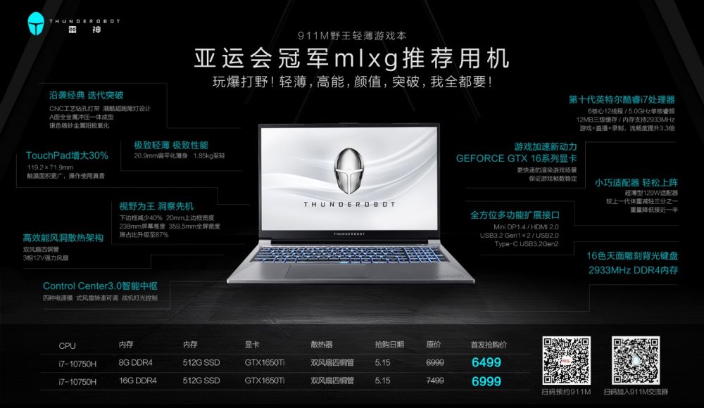 5月11日,雷神召开“无限竞迹”2020线上新品发布会,围绕用户电竞全场景体验,推出游戏笔记本、游戏台式机和电竞外设等系列新品。同时,正式官宣与MLXG达成合作,并推出MLXG定制款新品,携手助力中国电竞梦想。