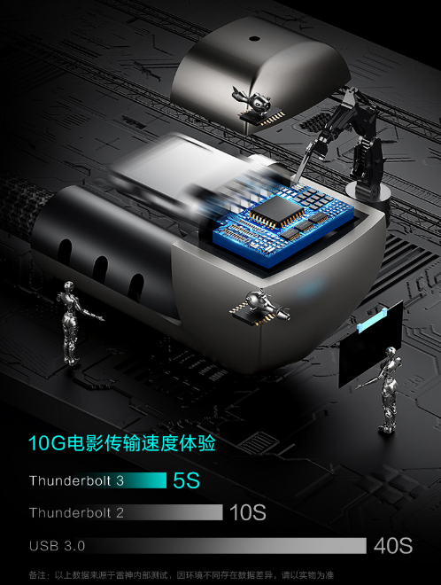 另外值得惊喜的一点是,雷神911 P1 Plus在传输方面采用了ThunderboltTM3疾速传输,雷电级疾速海量文件传输,彻底割断羁绊,快到酣畅淋漓。