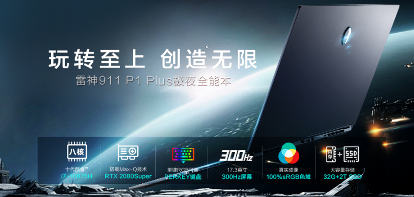 玩转至上,创造无限。第十代智能英特尔® 酷睿™八核i7,宗师级高性能移动版处理器电竞杰作、搭载RTX2080S/RTX2070光追技术高性能显卡——全新雷神911 P1 Plus全能本来袭,将于8月10日预售全面开启。预约享8月13日首发价低至14999!