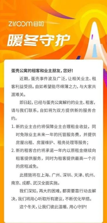 蛋壳爆雷事件持续发酵很久,从被传爆雷到真的爆雷,也就短短数日。蛋壳公寓维权,情况比想象更糟糕。12月4日,蛋壳的对手自如也正式宣布,愿帮助受蛋壳公寓事件影响的业主和租客共渡难关,针对蛋壳公寓的业主和租客已开展“暖冬计划”专项扶持。
